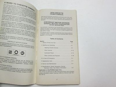 1978 Chevrolet Monza Proprietari Manuale Operativo Sicurezza Cura Vetrata Affare