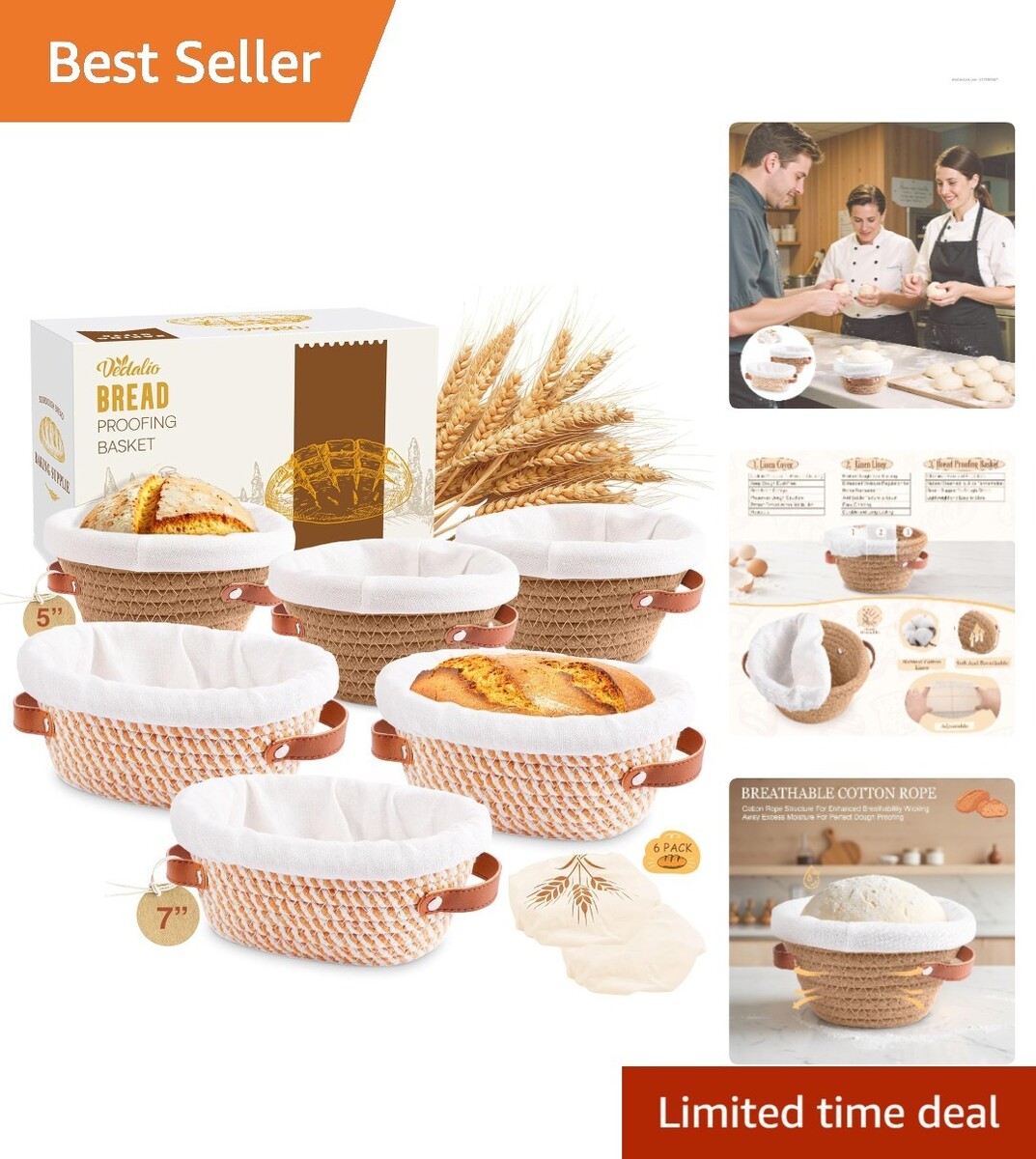 Includes 3 Round Sourdough Proofing Baskets (5 Inch) 3 Oval Bread Baskets (7 Inch).