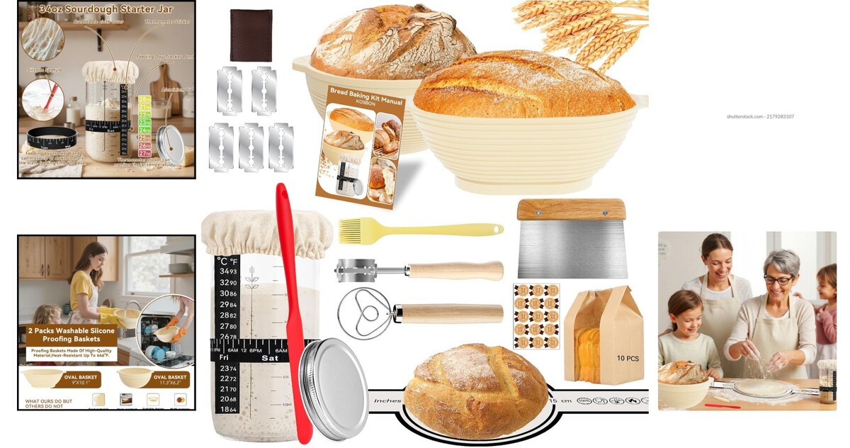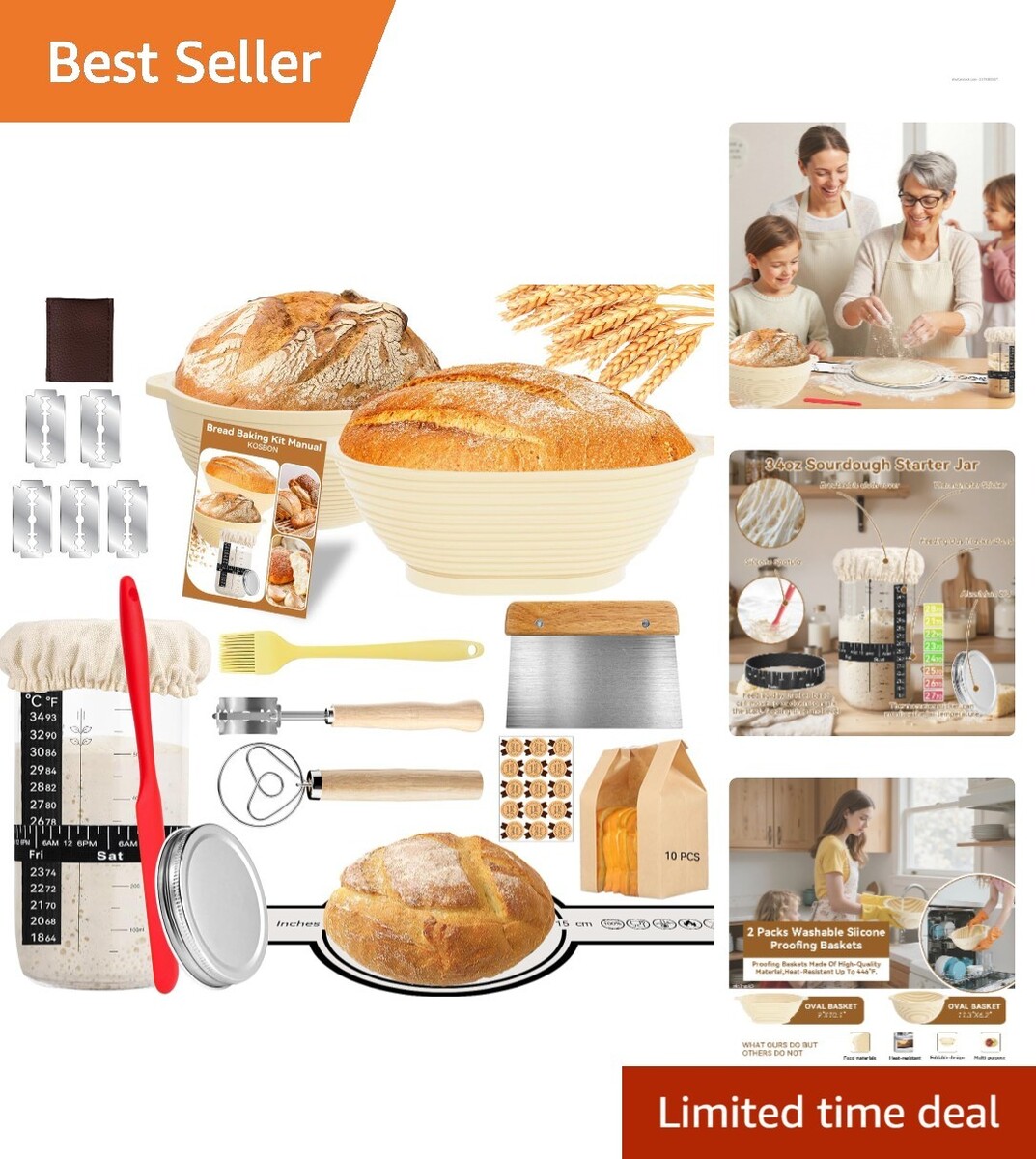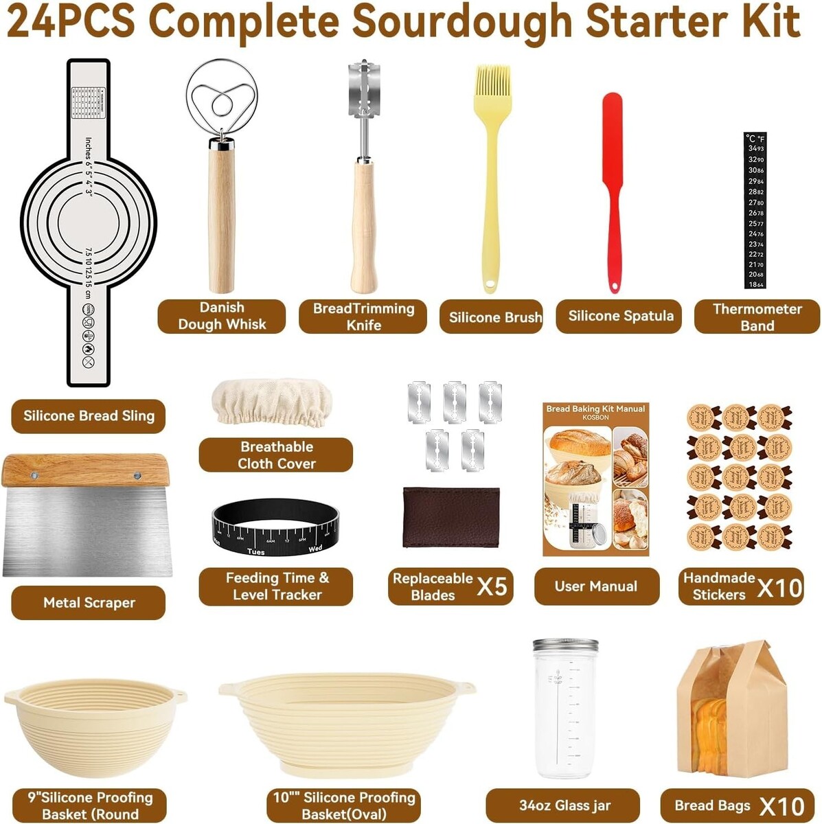 24-Piece Sourdough Starter Kit with 34oz Jar & Silicone Proofing Baskets