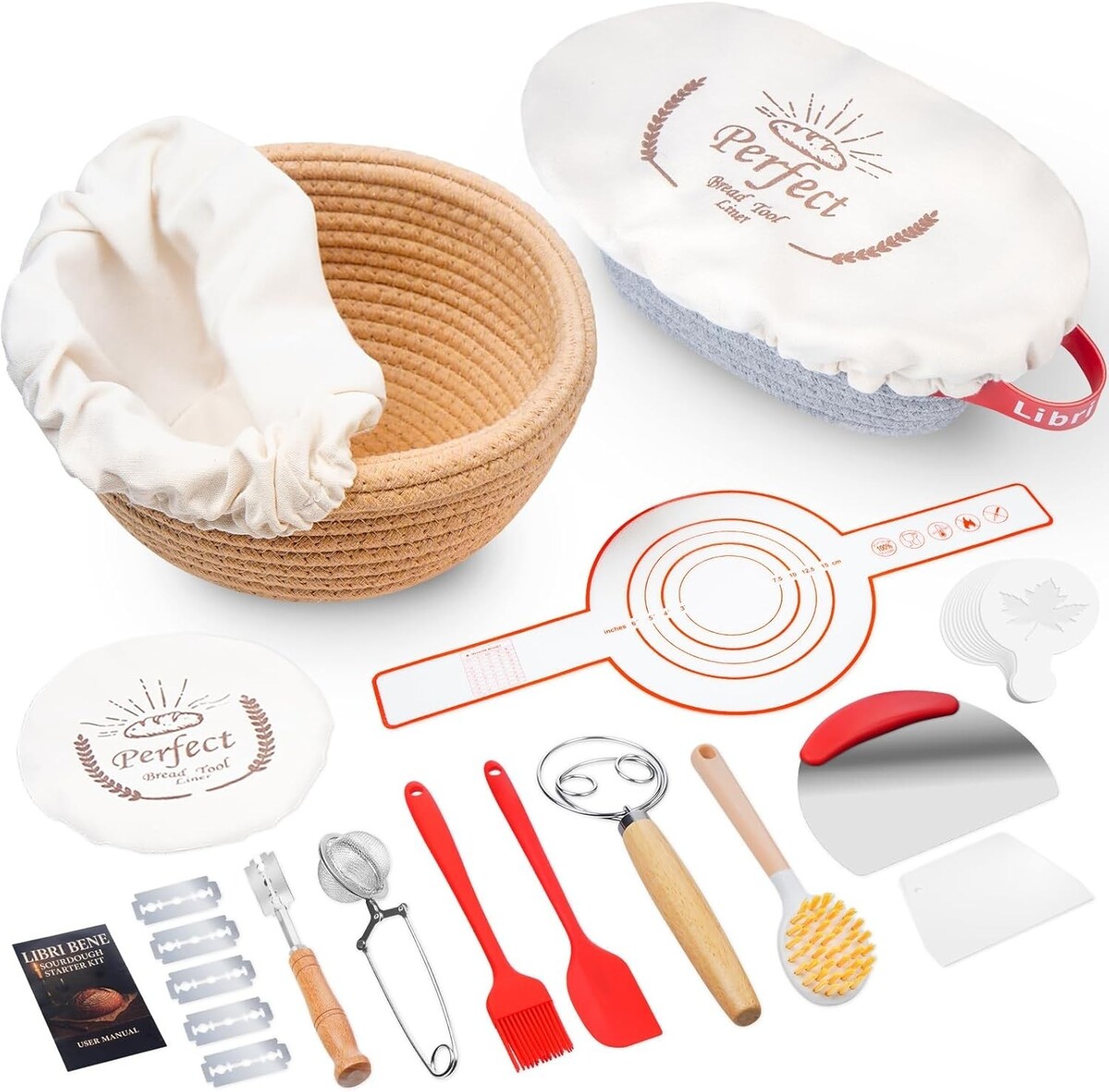 Sourdough Baking Kit with Round & Oval Proofing Baskets, 38 Pieces