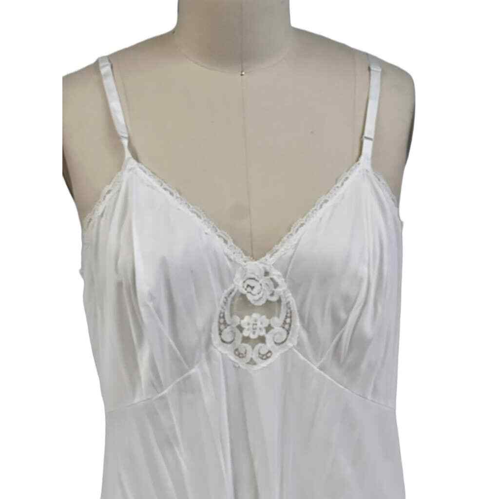Step into vintage elegance with this white full slip by Vanity Fair. Made from 100% nylon ( Antron) , this slip offers a comfortable and lightweight fit. The classic white color and the slip's 1960s era design make it a stylish and timeless piece. Very good condition, no flaws.