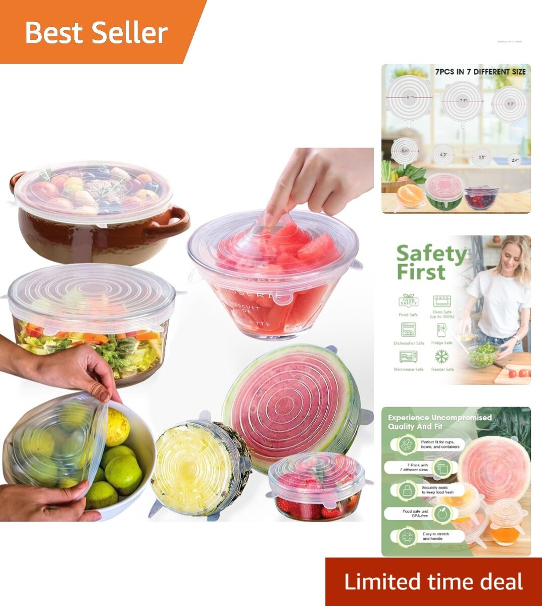 7-Piece Reusable Silicone Stretch Lids Set - Eco-Friendly Food Covers