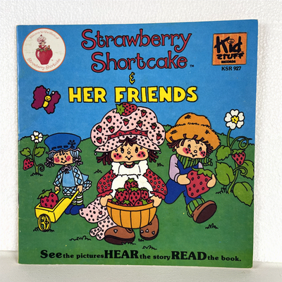 Immerse yourself in the delightful world of Strawberry Shortcake with this vintage "Talking Story Book" audiobook. Titled "Strawberry Shortcake Her Friends," this engaging listening experience is presented on a single cassette tape. Designed for young listeners, it features exact word-for-word narration, exciting sound effects, and a sound cue to turn the page, encouraging children to learn and read along with the included pictures in the accompanying book. This charming edition was published by Kid Stuff Records, with a copyright date of 1980 by American Greetings Corp. The packaging includes a paperback book designed to be read along with the cassette.