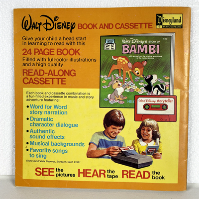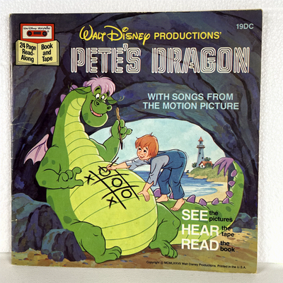 Immerse yourself in the classic tale of Walt Disney Productions' Pete's Dragon with this vintage Storyteller Read-Along Cassette Tape and Book set. This edition features the beloved story along with songs from the motion picture, offering a full cast/dramatized presentation with word-for-word story narration, dramatic character dialogue, authentic sound effects, and musical backgrounds to enhance the listening experience. The set includes one Cassette Tape and a 24-page illustrated book, allowing children to read along as they listen to the story and songs.