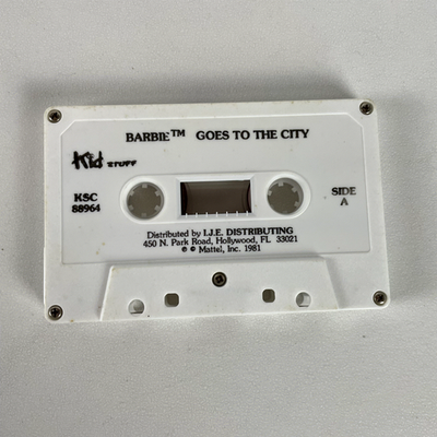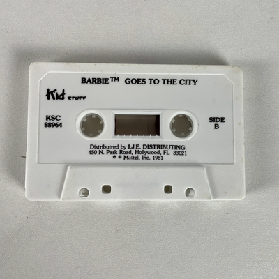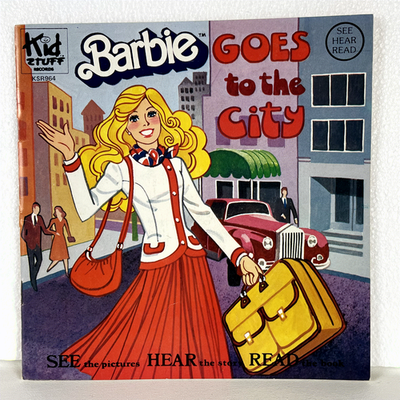 Immerse yourself in the classic tale of "Barbie? Goes to the City," presented as a vintage Talking Story Book from Kid Stuff Records. This charming audiobook features word-for-word narration, accompanied by exciting sound effects, designed to encourage children to learn to read. The set includes one cassette tape and an accompanying storybook, where a distinct sound indicates when to turn the page, creating an interactive listening and reading experience. This edition was distributed by I.J.E. Distributing and is a delightful piece of Barbie history.