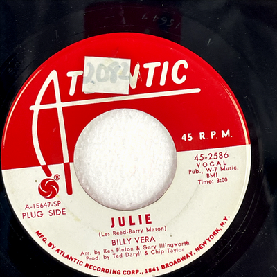 This release, catalog number 45-2586, is a testament to the soulful pop and rhythm blues era of the late 1960s. Both tracks run for 3:00, delivering concise and impactful performances. "Julie" was penned by Les Reed and Barry Mason, while "Time Doesn't Matter Anymore" was written by Ken Finton and Gary Illingworth. Produced by Ted Daryll Chip Taylor, this single captures the essence of 60s pop and soul, making it a must-have for collectors of vintage vinyl and fans of Billy Vera's early work. Its status as a "PLUG SIDE" adds a unique touch for music history enthusiasts.