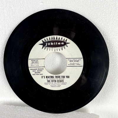 Discover a piece of 1960s pop history with this rare promotional 7-inch vinyl single by The Fifth Estate, featuring their tracks "Heigh-Ho" and "It's Waiting There For You." Released in 1966 on the iconic Jubilee label (catalog number JB-5595), this record is marked as an "ADVANCE RELEASE," a "DISC JOCKEY RECORD," and "NOT FOR SALE," making it a highly collectible promotional pressing. The A-side, "Heigh-Ho," is designated as the "PLUG SIDE" with a star, indicating it was the intended radio single.