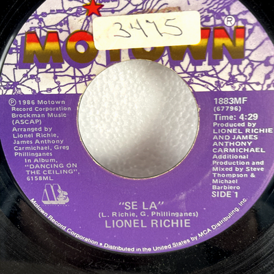 Discover this classic 7-inch vinyl single by the legendary Lionel Richie, released on the iconic Motown label. This record features "Se La," a captivating track from his highly acclaimed 1986 album "Dancing on the Ceiling," which soared on the charts and became a staple of 80s pop. The B-side offers "Serves You Right," an soulful cut from his successful 1982 self-titled album, showcasing Richie's versatility and enduring appeal.