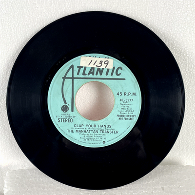 Discover this rare promotional 7-inch single from The Manhattan Transfer, featuring their vibrant track "Clap Your Hands." Released by Atlantic in 1975, this collectible record is marked "PROMOTION COPY NOT FOR SALE," indicating its original distribution to radio stations and media outlets, making it a sought-after item for collectors.