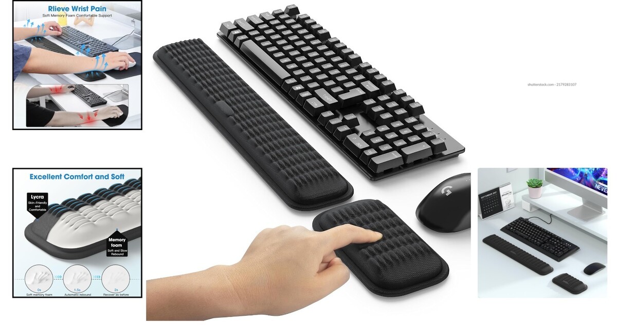 Black Memory Foam Wrist Rests for Keyboards & Mice - Pain Relief Essentials