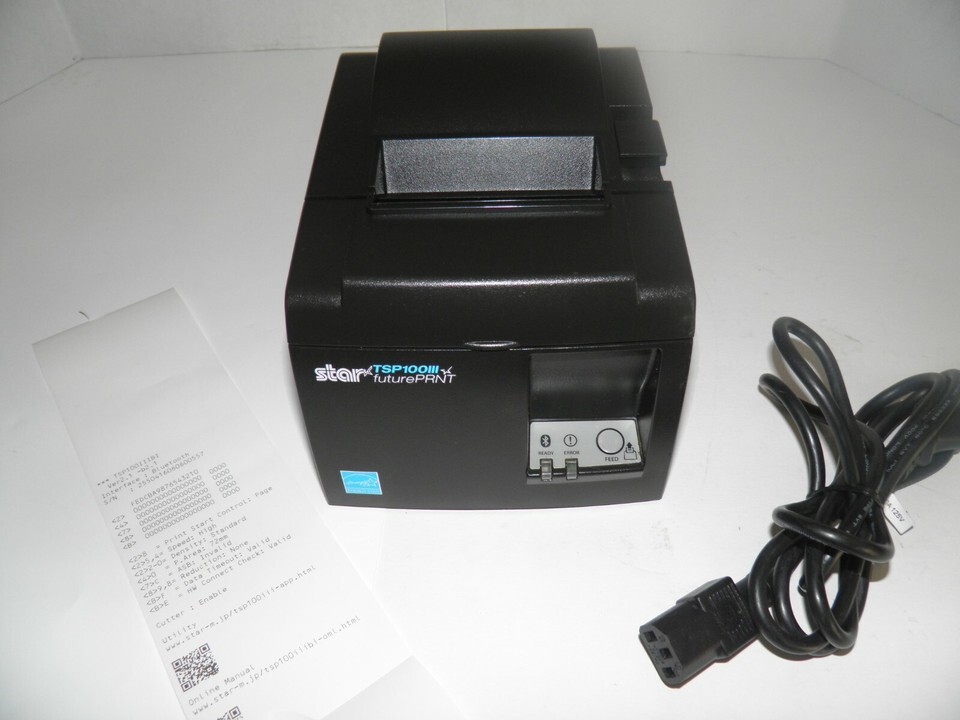Star TSP100 Thermal POS Receipt Printer TSP143IIIBI w Bluetooth Power Cord