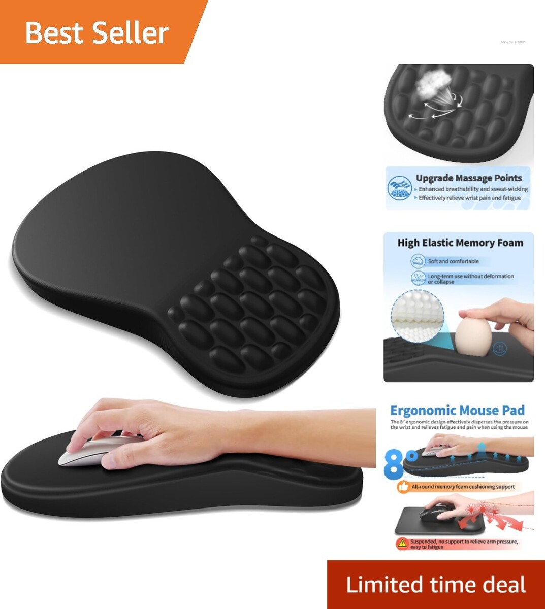 Ergonomic Mouse Pad with Memory Foam Wrist Support - Black & Non-Slip Base