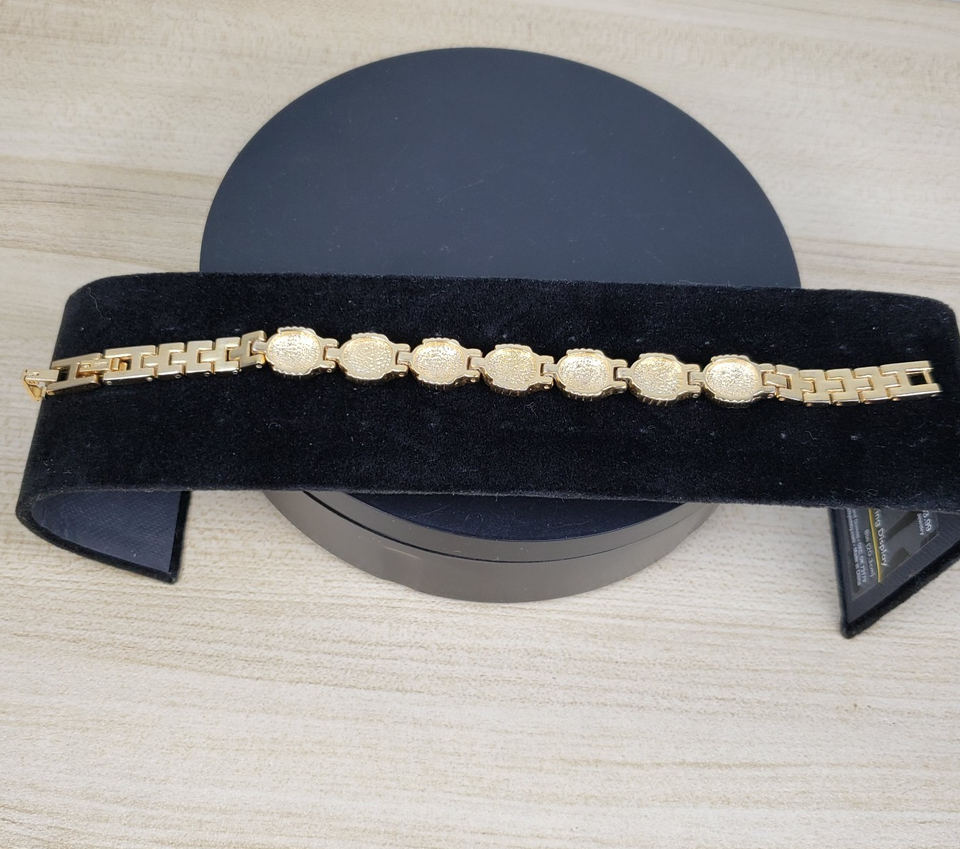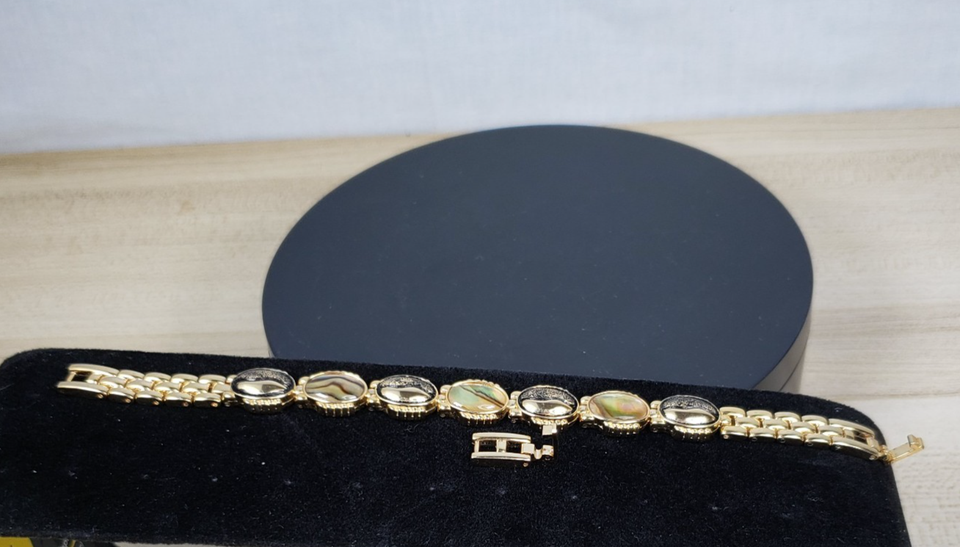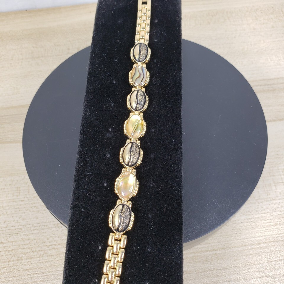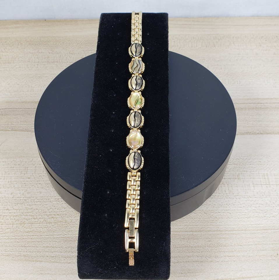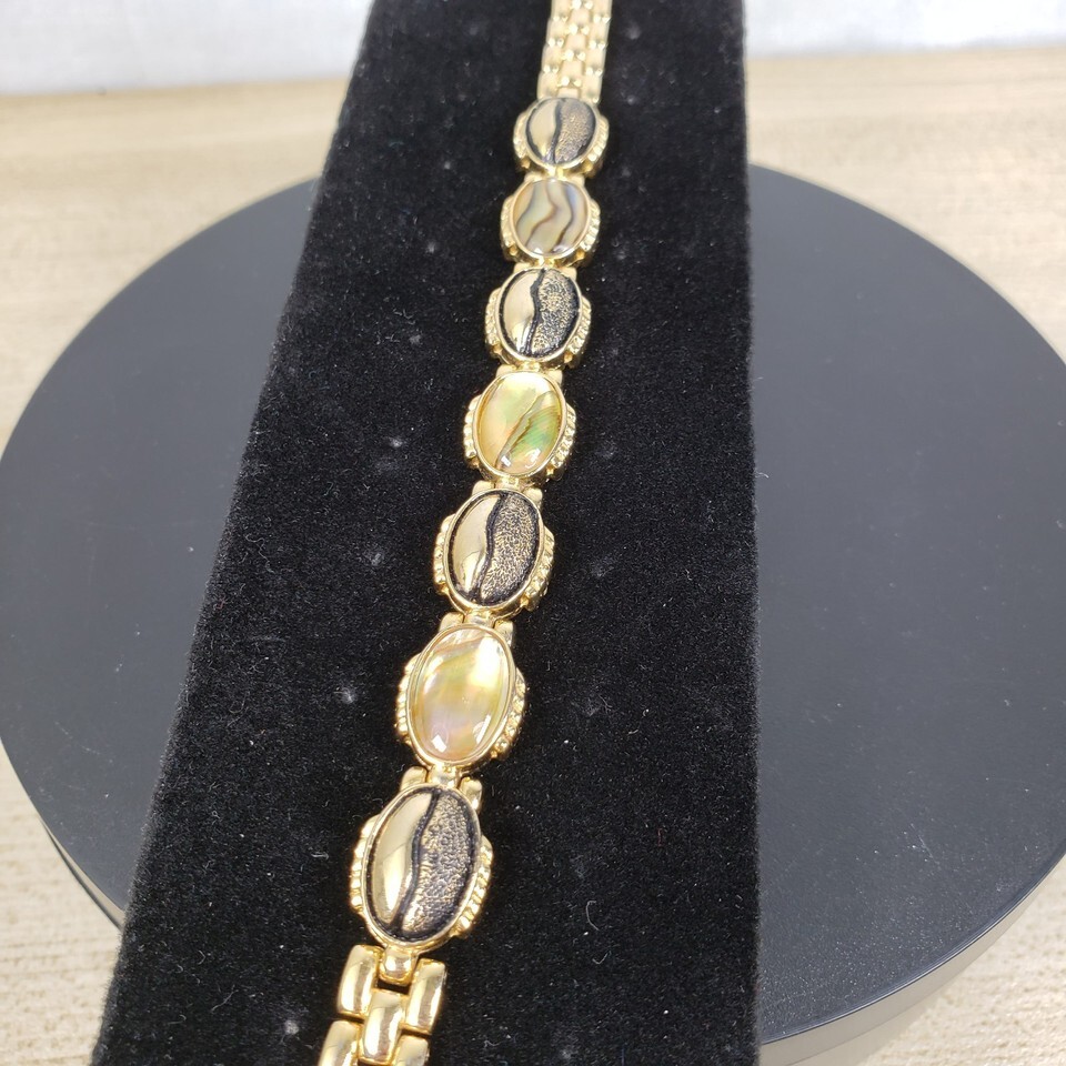 Vintage 1990's Autumn Gold Toned Textured Abalone Look 7" Bracelet
