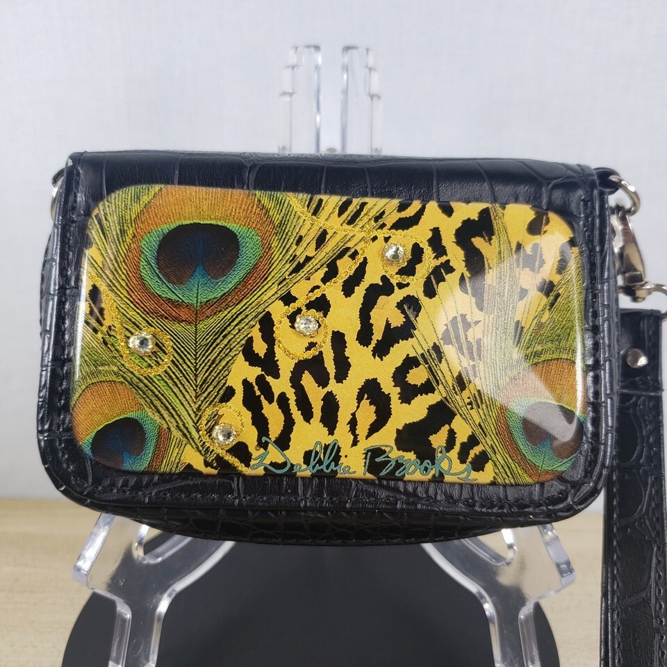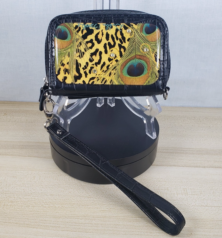 Debbie Brooks Black Peacock Animal Print Rhinestone Wristlet Wallet Phone Case
