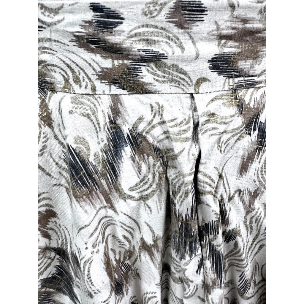 VTG 50s Rockabilly Full Circle Skirt Black Gold Metallic Abstract Cotton XS 21W