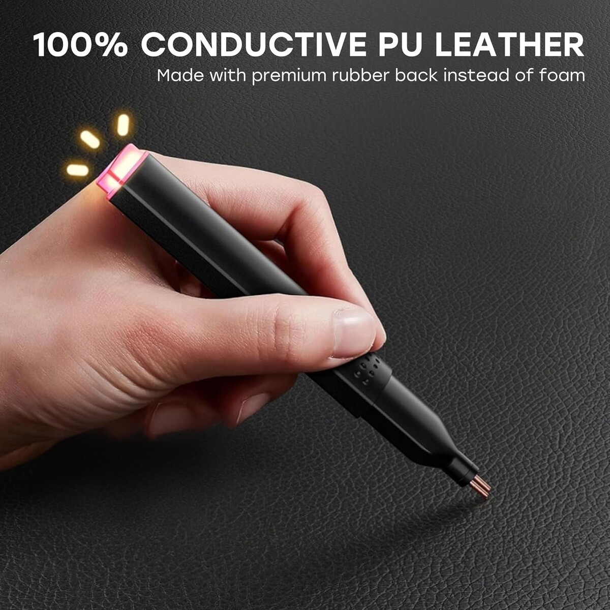 Crafted from carbon-infused leather for a luxurious touch.