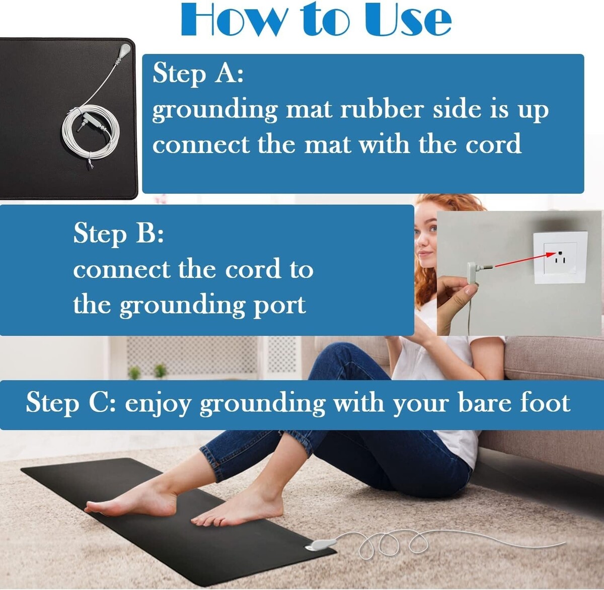 Lightweight Grounding Bed Mat with Cord