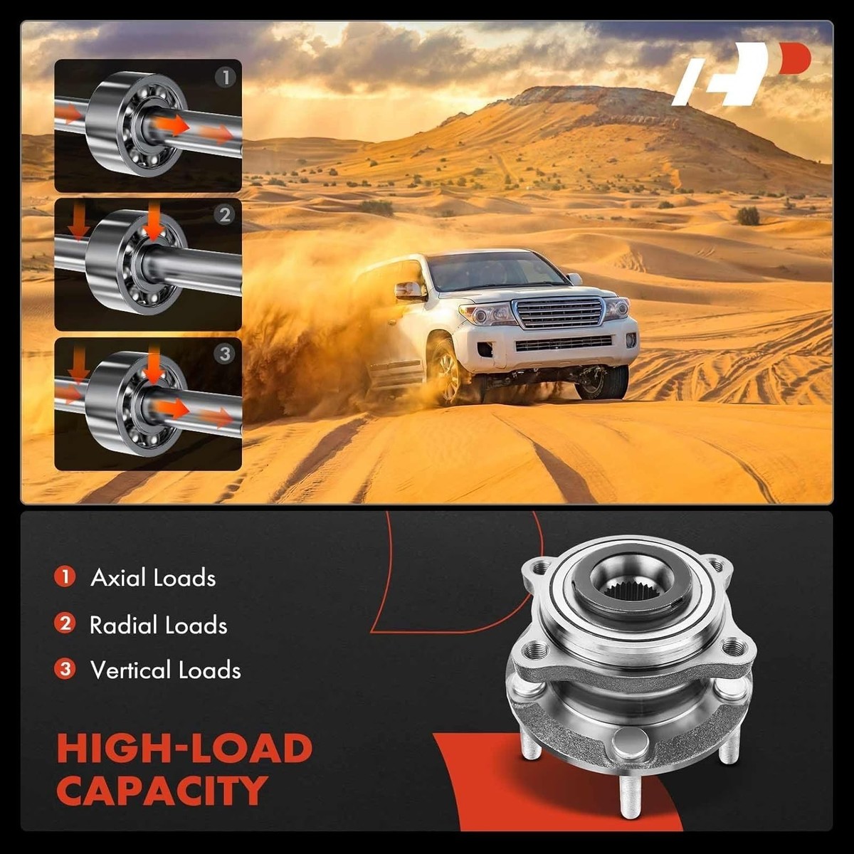[High Load Capacity]: A-Premium wheel bearing hub assembly comes with ball or roller bearing, which can provide perfect axial and radial loads capacity, and meet the daily driving condition. Additionally, the wheel studs are made of sturdy steel, and the specification is same as original, which fits the current disc rotor, wheel and nuts, making the old rusted wheel hub bearings look like new.