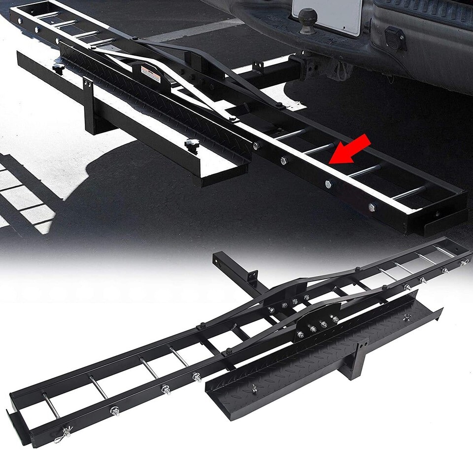 Motorcycle Scooter Dirt Bike Carrier Hauler Hitch Mount Steel Rack with Loading Ramp 500lb Capacity