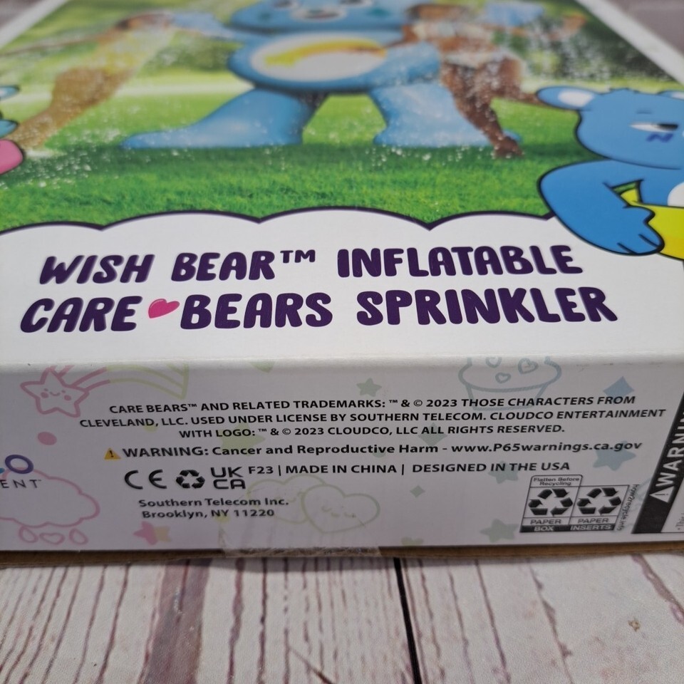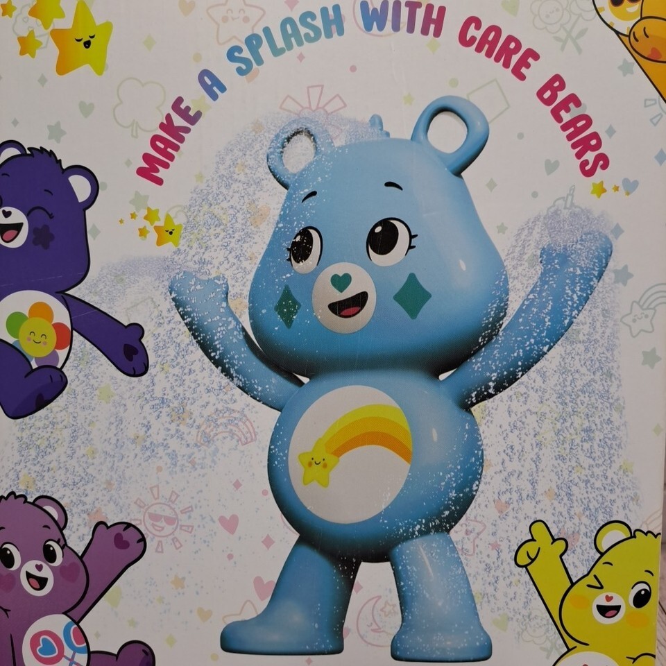 The product is a Care Bears XL Inflatable Sprinkler Water Toy featuring the Blue Wish Bear, measuring 60? in size. It is designed for children aged 3-4 years and belongs to the water toy category. The sprinkler toy is part of the Care Bears character family, making it a fun and entertaining addition to any summer yard playtime. Made by Bestway, this inflatable water sprinkler splash toy is sure to provide hours of enjoyment for young water lovers.