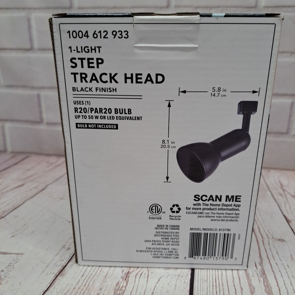 The Hampton Bay 1-Light Black Finish Step Track Lighting Head is a modern and stylish indoor lighting fixture suitable for various rooms in a home. This hardwired track light features a sleek black metal design with a round shade shape, perfect for a casual or new home atmosphere. The versatile lighting head can illuminate downwards, upwards, or indirectly, providing flexibility in lighting design. With a 120V voltage and energy-efficient LED lighting technology, this track lighting head from Hampton Bay is a practical and elegant addition to any space.