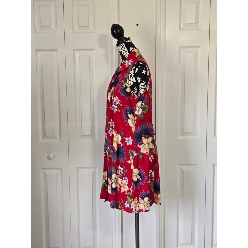 Impressions Workshop Womens Red Blue Floral Print Button Up Dress Size L