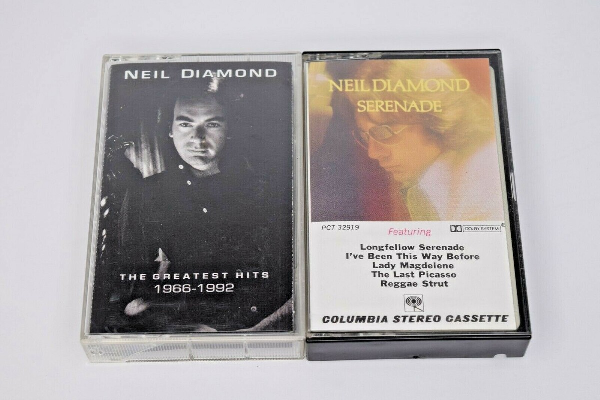 Lot of 2 Neil Diamond Cassette Tapes: Serenade and The Greatest Hits 1966-1992 (Sides 3 4). Pre-owned in Good Condition. Both have been tested for the first 5 min. on each side and play fine. Cases and liner notes are good with some light wear. See all photos for details and condition. Will ship USPS Media Mail.