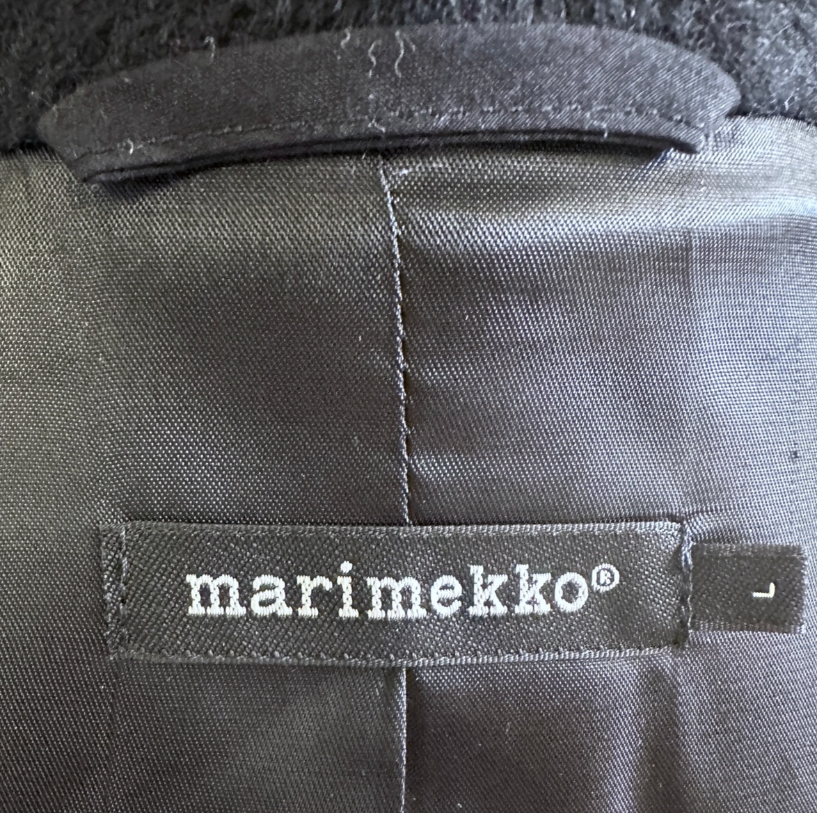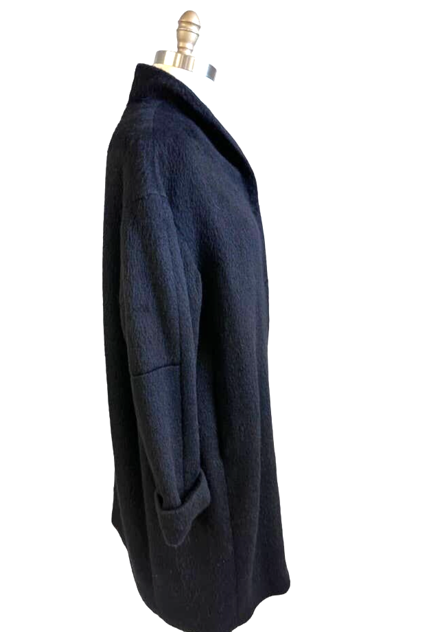 Marimekko Mollis Mohair Wool Blend Black Sack Coat Hidden Snap Pockets L