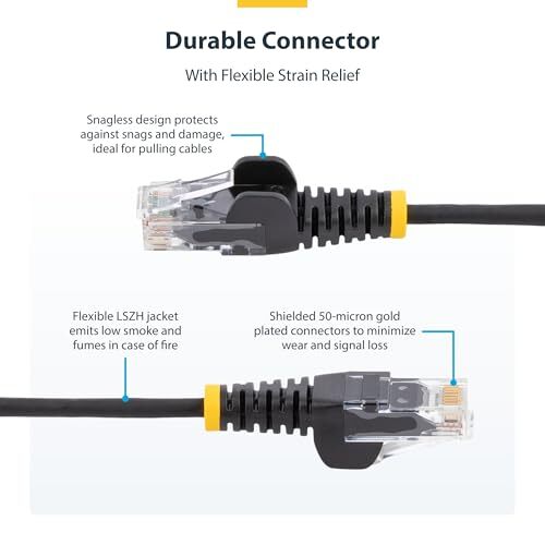 Bullet point: SLIM CAT6 CABLE: Streamline cabling in crowded setups using Slim Cat6 Cables; 36% slimmer diameter enables greater flexibility than standard Cat6 cabling; Supports Power over Ethernet (PoE++) up to 100W; Low Near-End Crosstalk (NEXT) and Return Loss (RL)