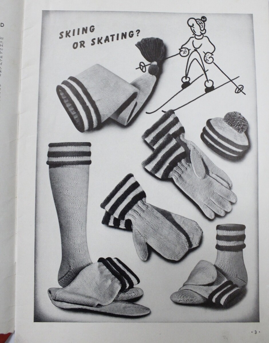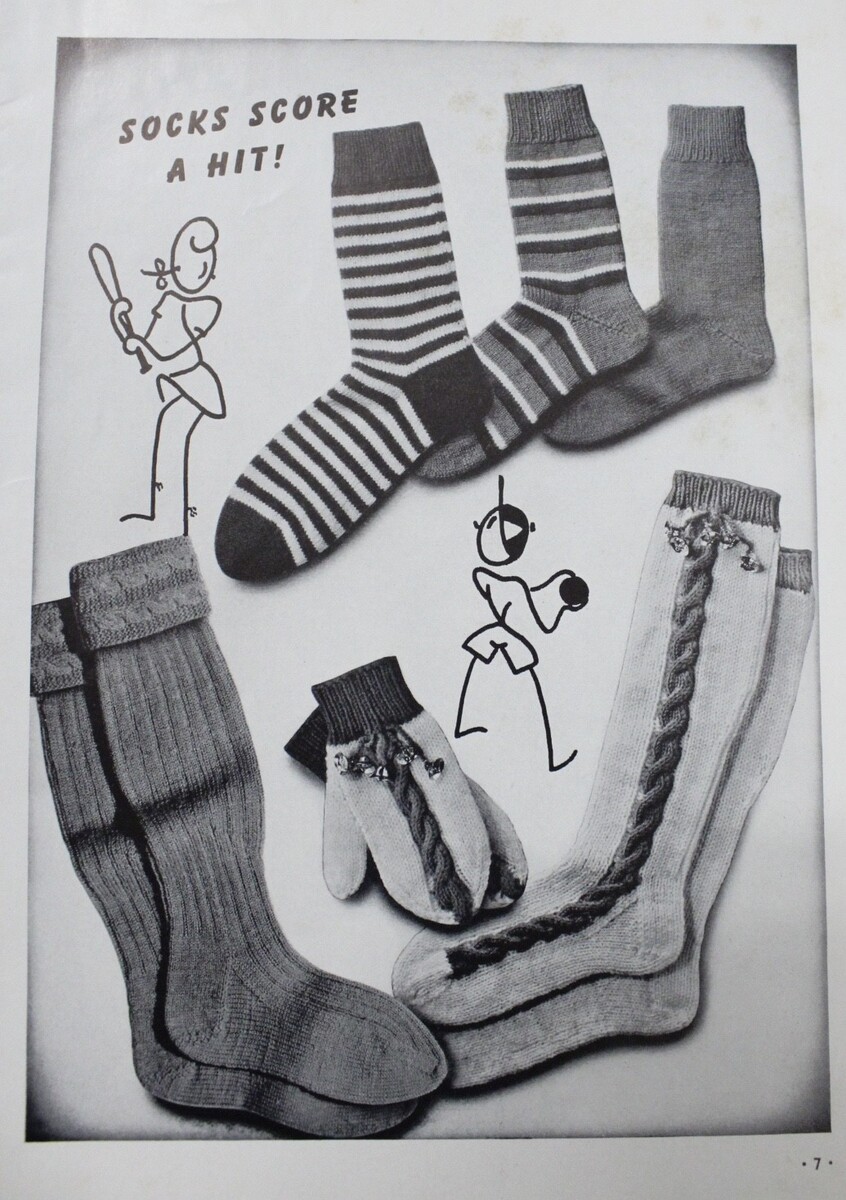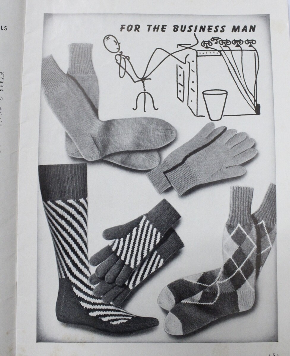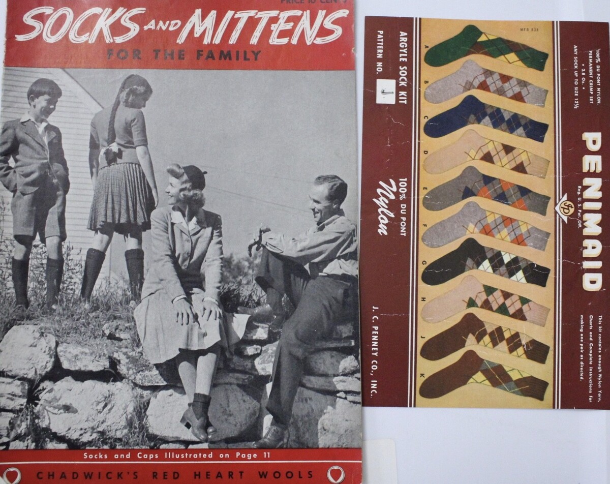 Fun vintage knitting and inspirations book, lots of instructions and patterns. 1941 had some amazing socks and mitten patterns. Cover is in normal wear condition- includes an ad from a JC Penneys Argyle sock kit.