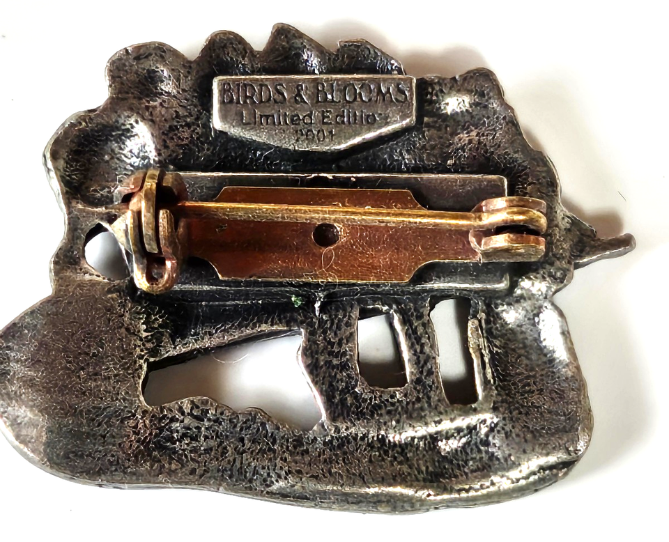 Birds & Blooms Silver-tone Limited Edition 2001 Brooch 2004- 1.1/8" x 7/8"
