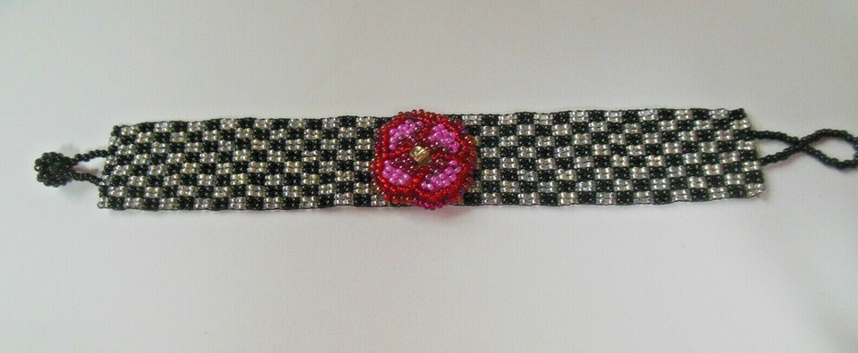 Vintage Woven Seed Bead Bracelet Pink Flower and similar items