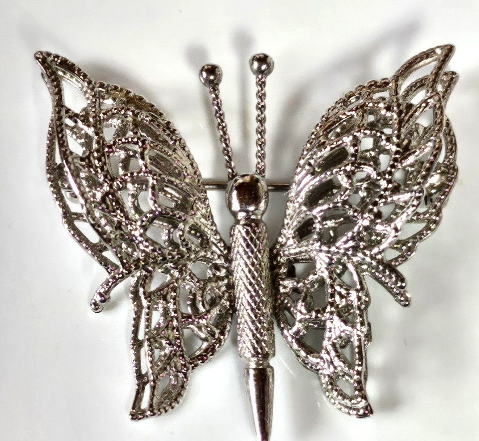 Vintage Signed Monet Silver-tone Filigree Butterfly Brooch 1.3/8" X 1.5"