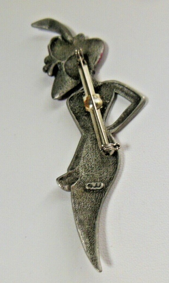Vintage Signed JJ Woman Figural Brooch Pink & Purple Enamel 3.1/2" Long