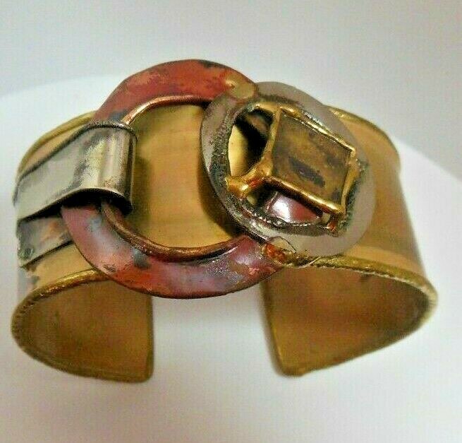 Unusual Vintage Copper,Silver-tone Abstract Cuff Bracelet