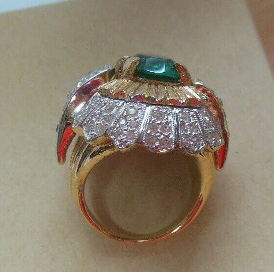Vintage Massive Rhinestone & Green Stone Cocktail/Statement Ring Size 6.5