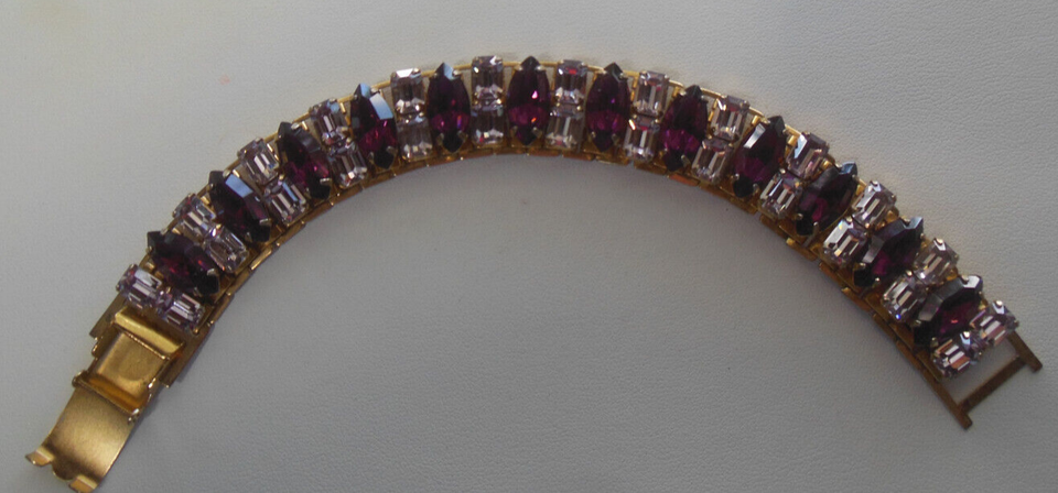 Vintage Signed CORO Pegasus Pat. Pend. Gold-tone Purple Link Bracelet 7." Long x 5/8" Wide
