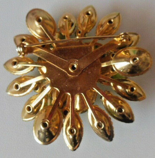 Vintage Green AB Faceted Prong-set Rhinestone Brooch