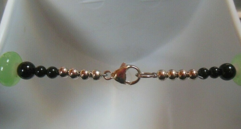 Vintage Green Black Glass Pendant 925 Clasp Necklace Hook Earrings
