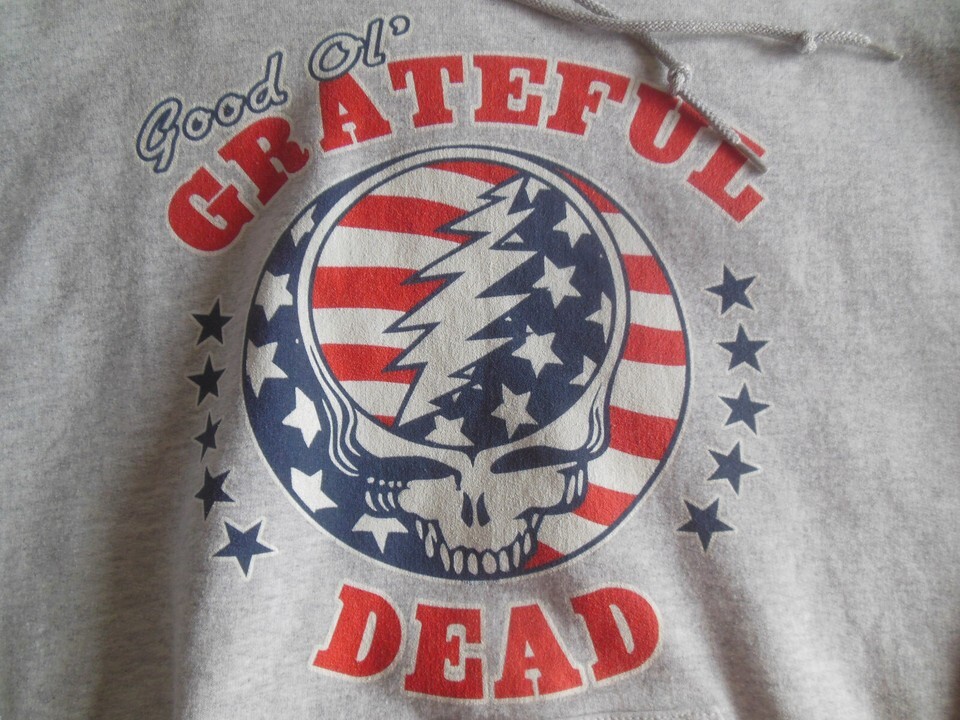 The "Good Ol' Grateful Dead Grey Hooded Sweatshirt" is a Gildan brand unisex adults' sweatshirt in size M. It features a pullover style with a drawstring closure and a hood for added warmth. The color is gray, making it a versatile wardrobe staple. This sweatshirt is perfect for fans of the Grateful Dead or anyone looking for a comfortable and stylish hooded sweatshirt for everyday wear.