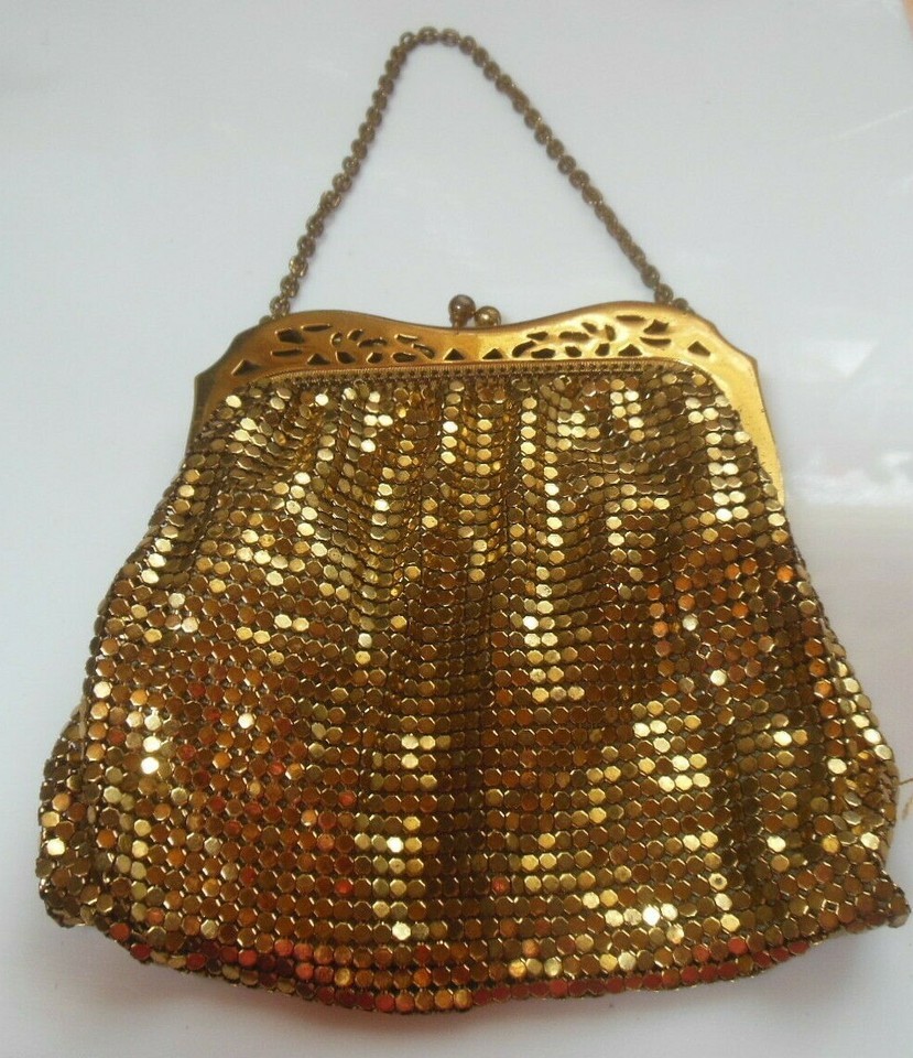 Vintage Whiting Davis Gold-tone Mesh Kiss-lock Purse W/Chain Handle