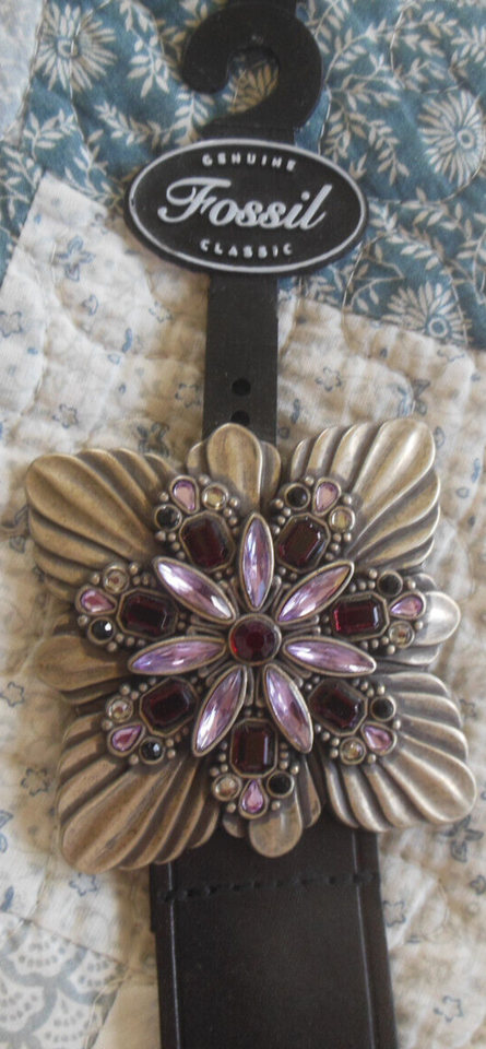 FOSSIL Women's Genuine Black Leather & Rhinestone Belt- Starburst