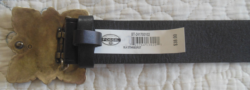 FOSSIL Women's Genuine Black Leather Rhinestone Belt- Starburst
