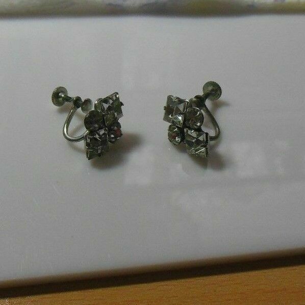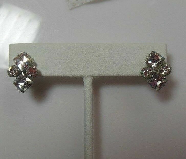 Vintage Signed Kramer N.Y. Clear Rhinestone Screw Back Earrings