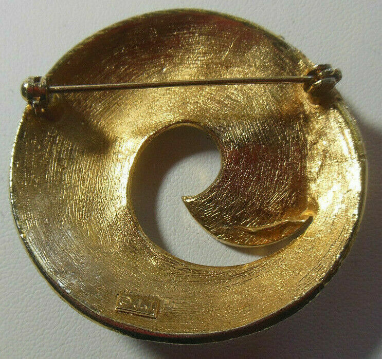 Vintage Signed JJ Gold-tone & Blue/White Enamel Swirl Brooch