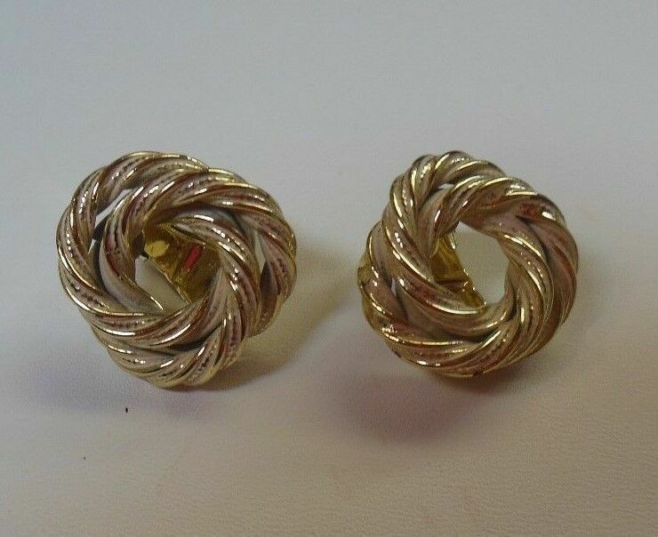 Vintage Marino Signed Gold-tone & White Enamel Knot Clip-on Earrings