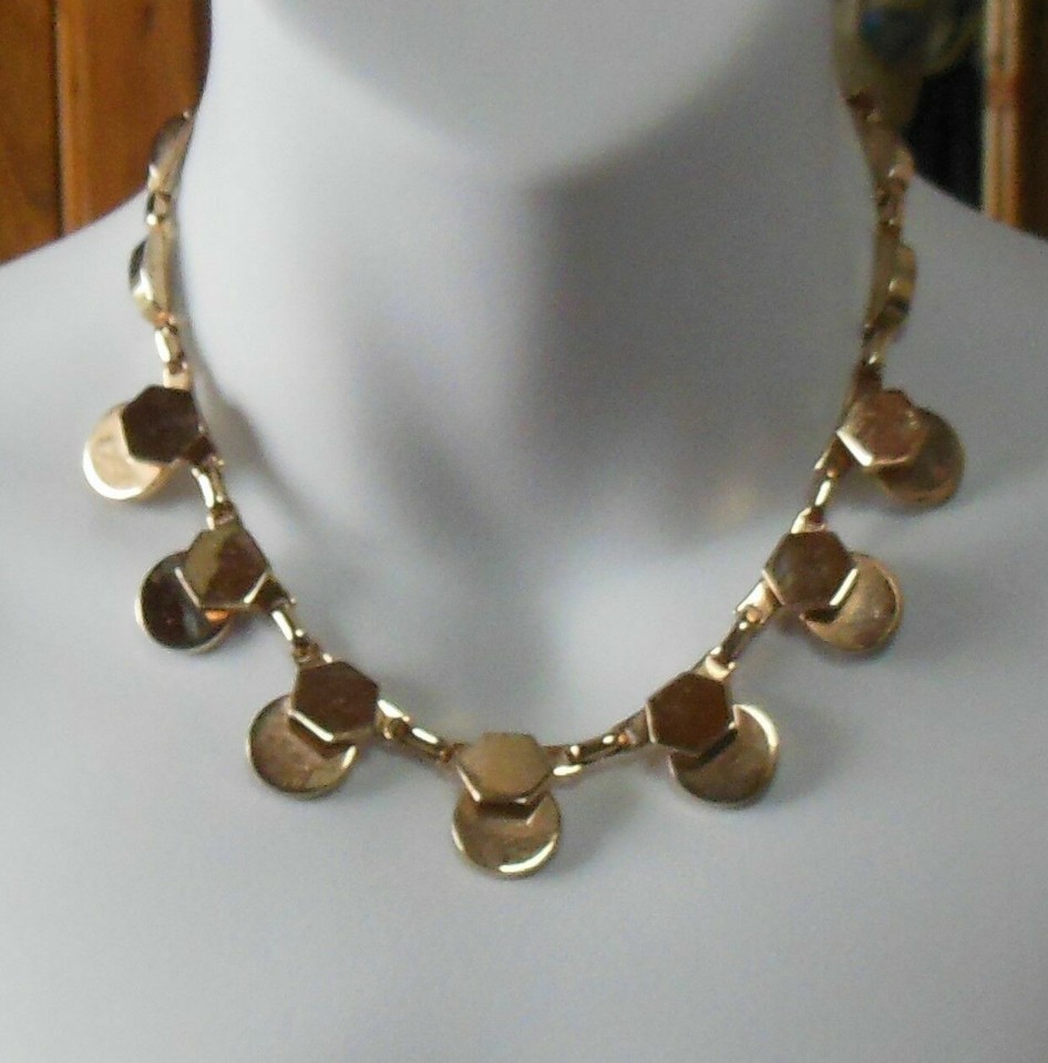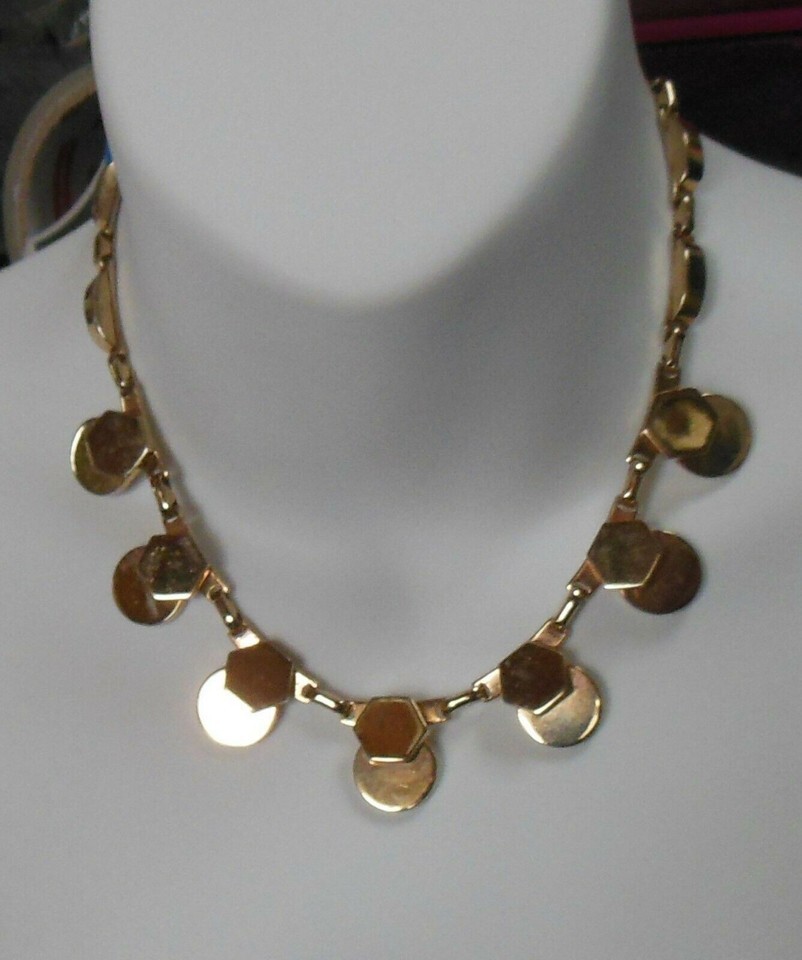 Vintage Kramer Gold Tone Disk Shape Bib/Collar Necklace
