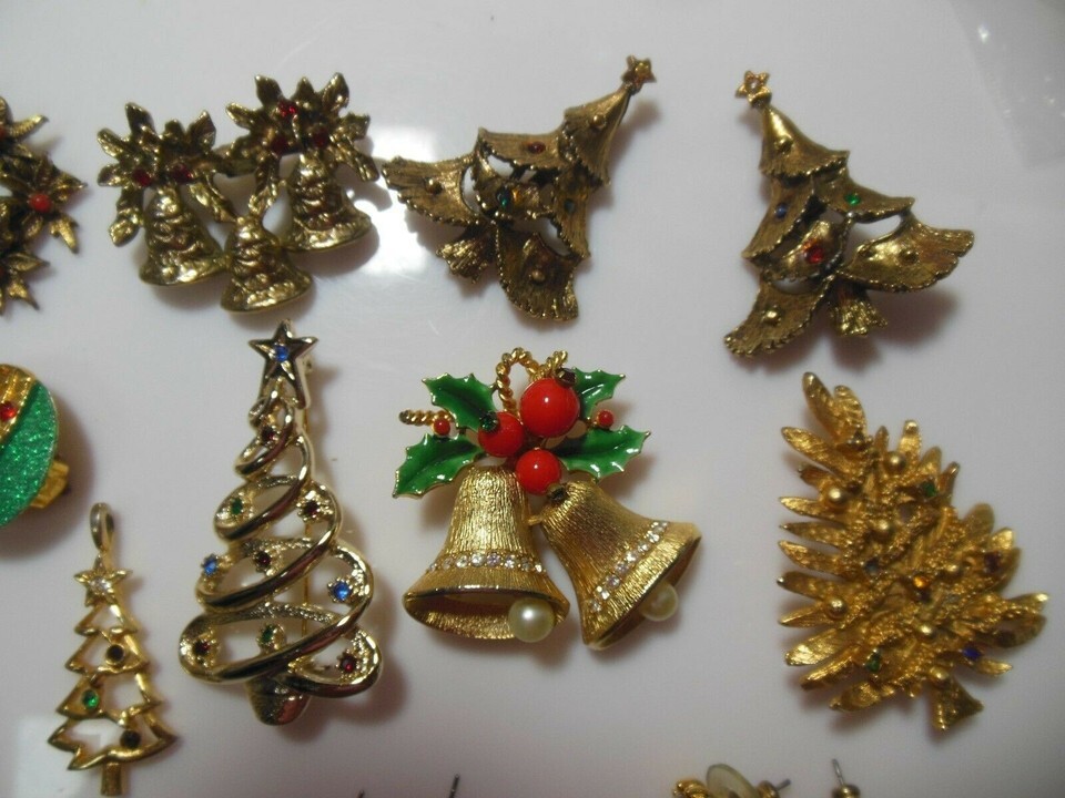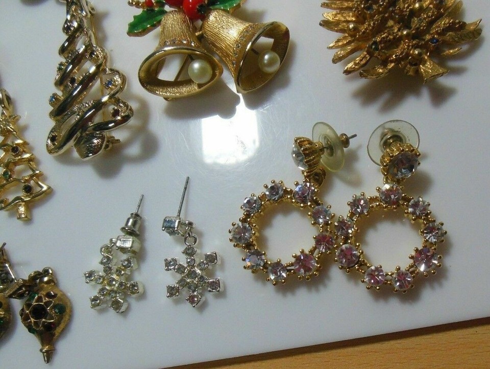 Vintage Rhinestone Christmas Brooches, Pendant Earrings Lot