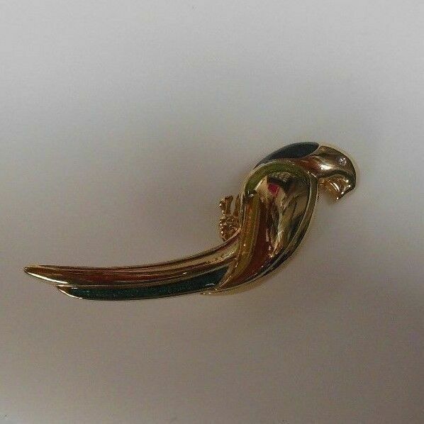 Vintage Signed LC Gold-tone W/Blue/Green Accents Parrot Brooch Rhinestone Eye
