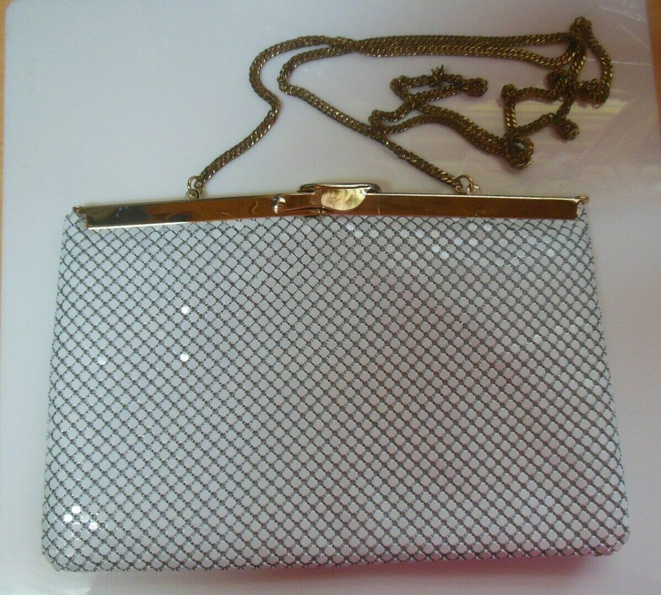 Vintage Whiting and Davis International White Mesh Bag Long Chain Handle